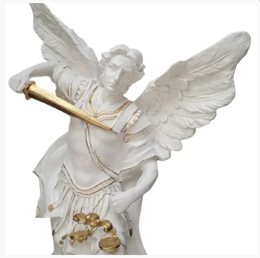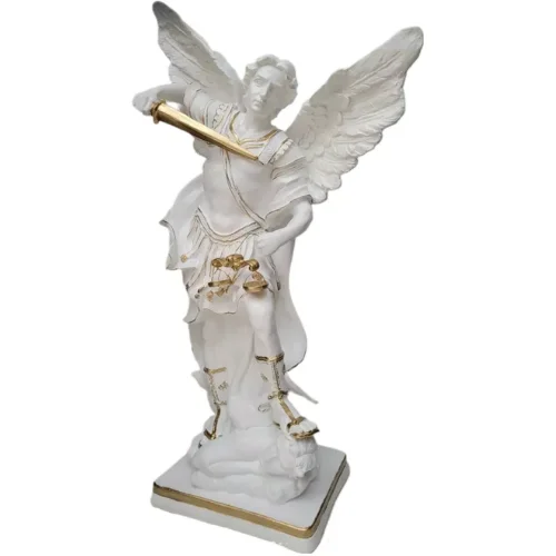 Com detalhes meticulosamente esculpidos, esta imagem transmite uma sensação de segurança e confiança, convidando à devoção e à invocação da proteção de São Miguel Arcanjo. Sua presença em seu lar ou espaço de culto é uma lembrança constante da intercessão e da assistência divina em nossas vidas.